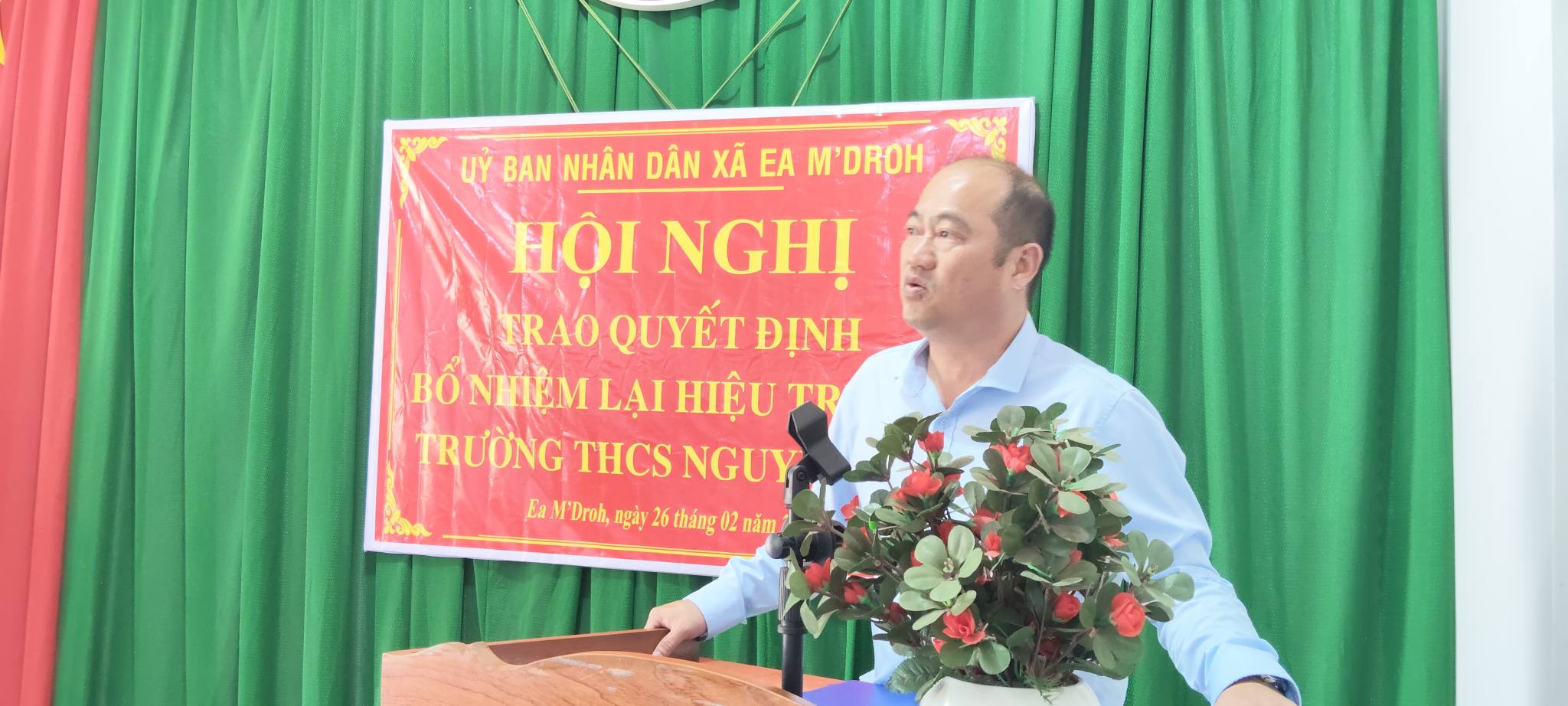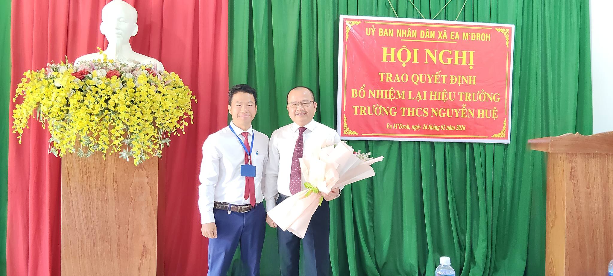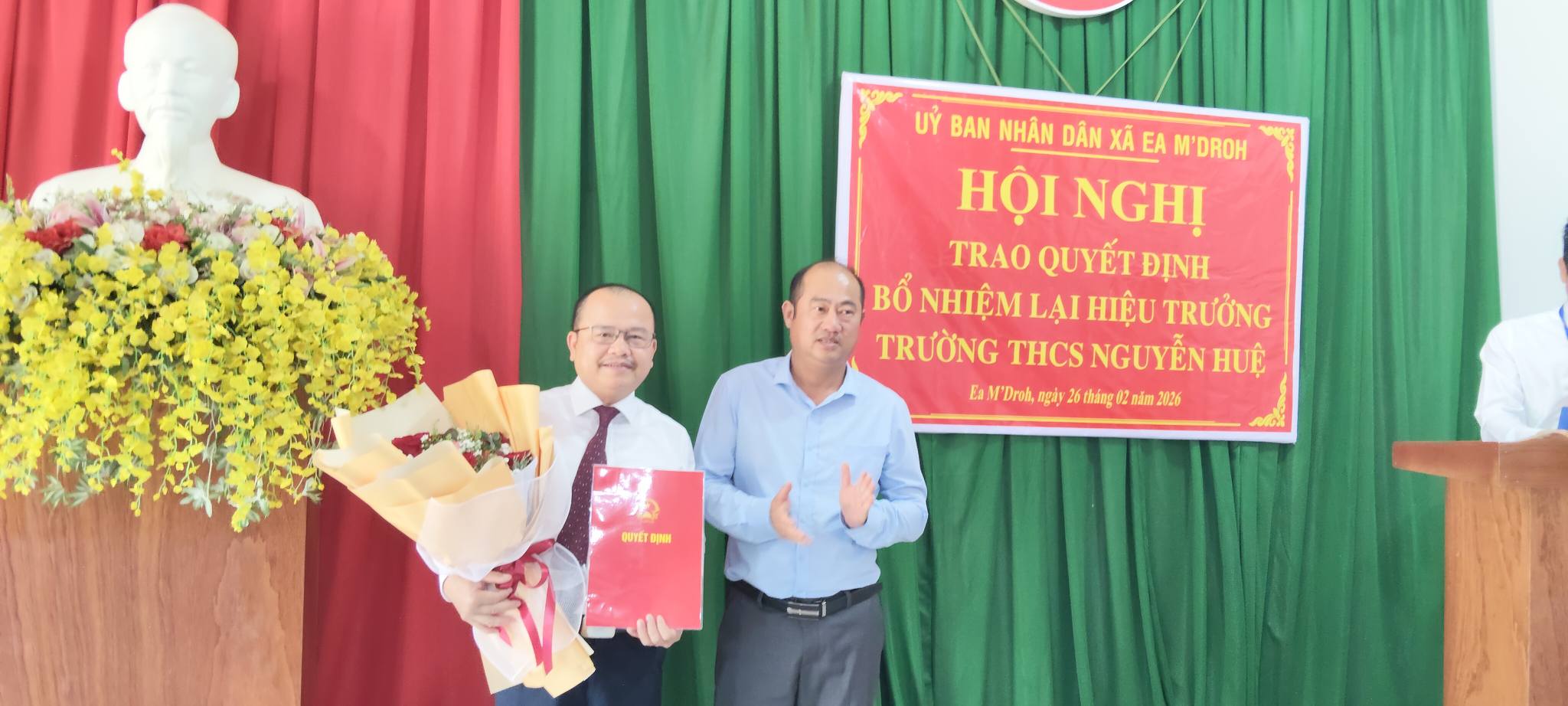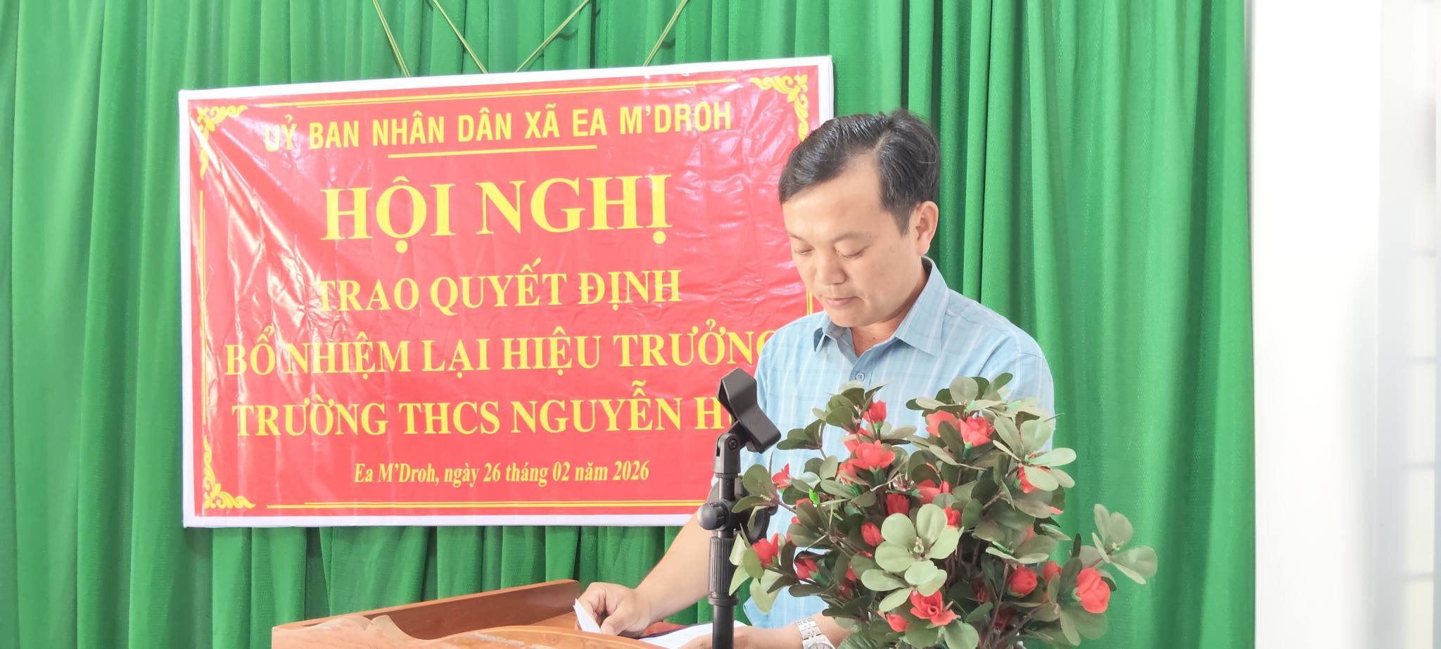 ✍️ Ngày 26/02/2026, tại Trường THCS Nguyễn Huệ, UBND xã Ea M’Droh đã tổ chức Hội nghị trao quyết định bổ nhiệm lại chức vụ Hiệu trưởng đối với thầy Lê Hoài Sơn.