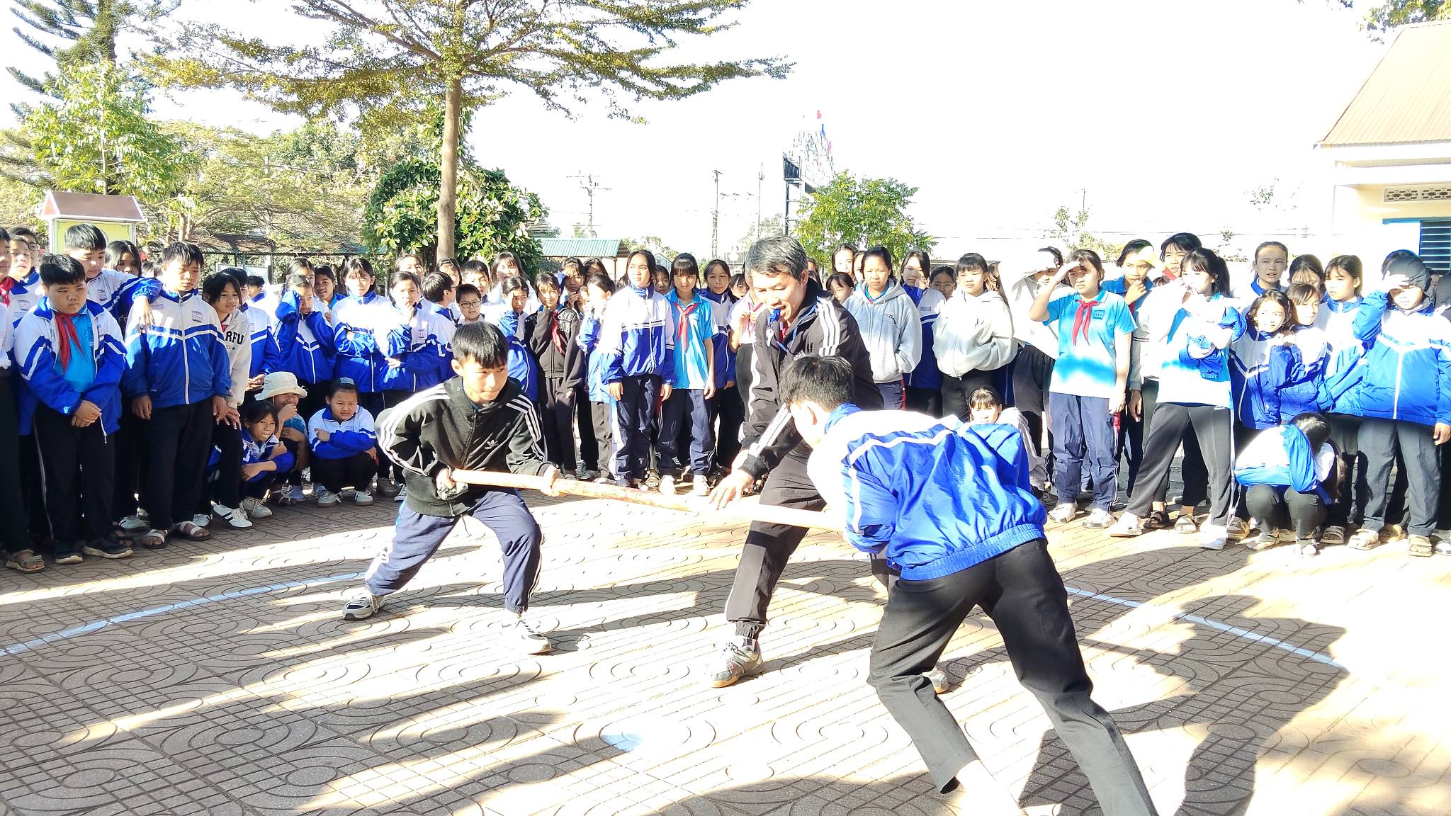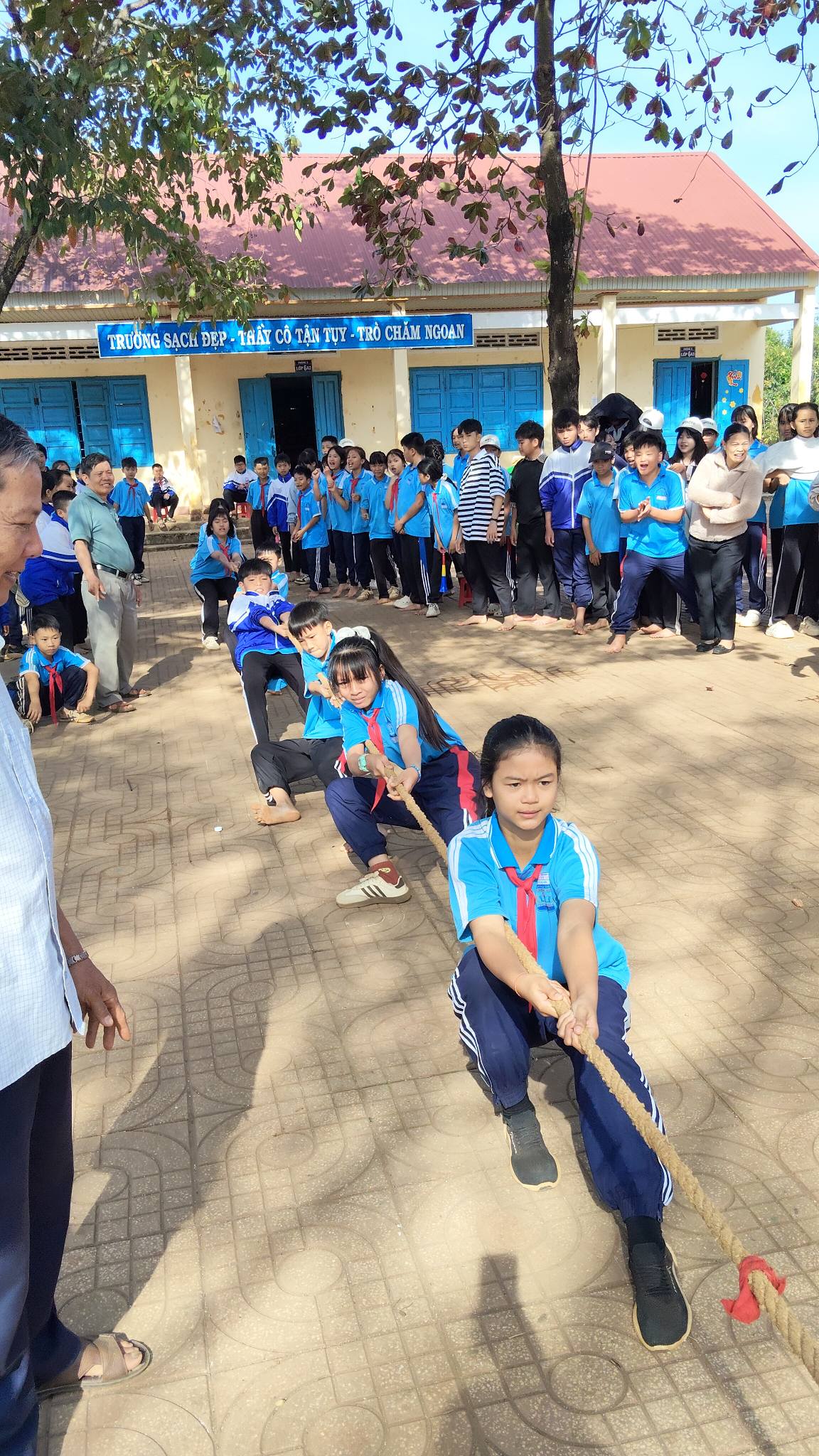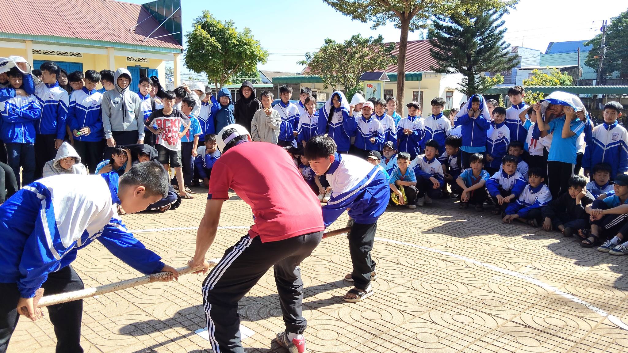 Nổi bật là môn kéo co, nơi các đội thi đấu với tinh thần quyết tâm cao, thể hiện sức mạnh tập thể, sự phối hợp nhịp nhàng và ý chí bền bỉ. Tiếng hò reo cổ vũ vang khắp sân trường, tạo nên bầu không khí vô cùng hào hứng.