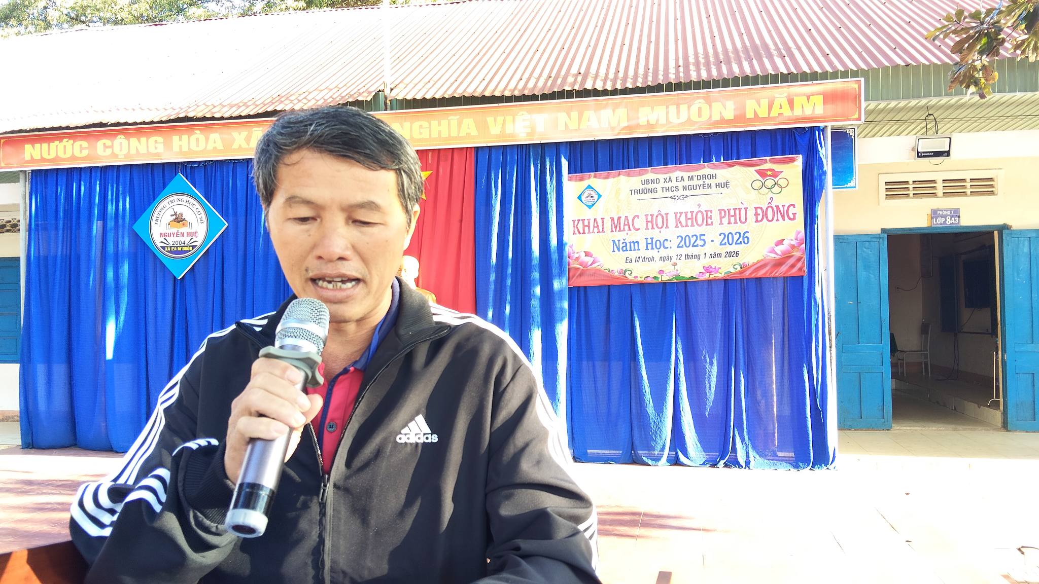 ✍️Phát biểu khai mạc Hội khỏe Phù Đổng, thầy giáo Lê Hoài Sơn, hiệu trưởng nhà trường đã nhấn mạnh: Hội khỏe không chỉ là dịp để các em học sinh thể hiện năng khiếu thể thao, mà còn là môi trường giáo dục ý chí, tinh thần đồng đội, tính kỷ luật và sự trung thực trong thi đấu; qua đó phát hiện, bồi dưỡng những học sinh có năng khiếu thể thao cho các giải đấu cấp trên.