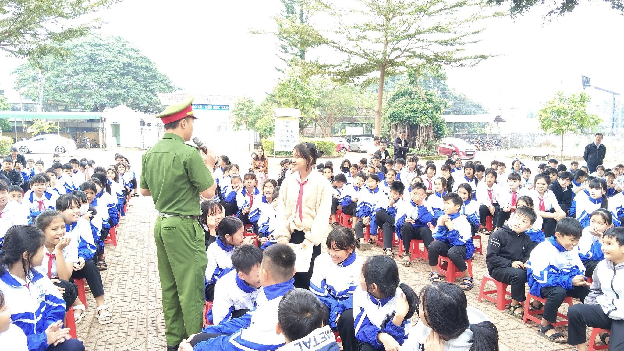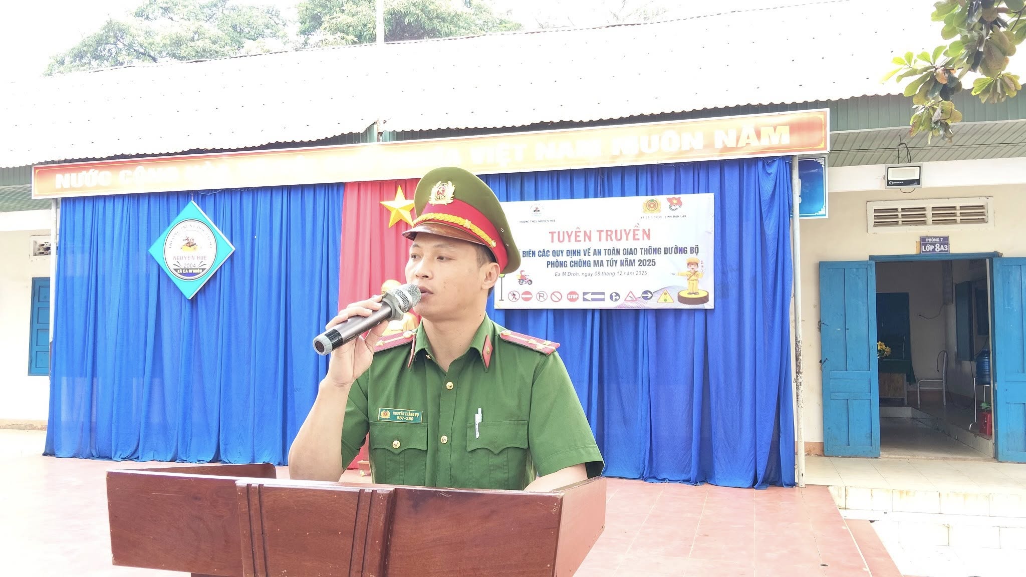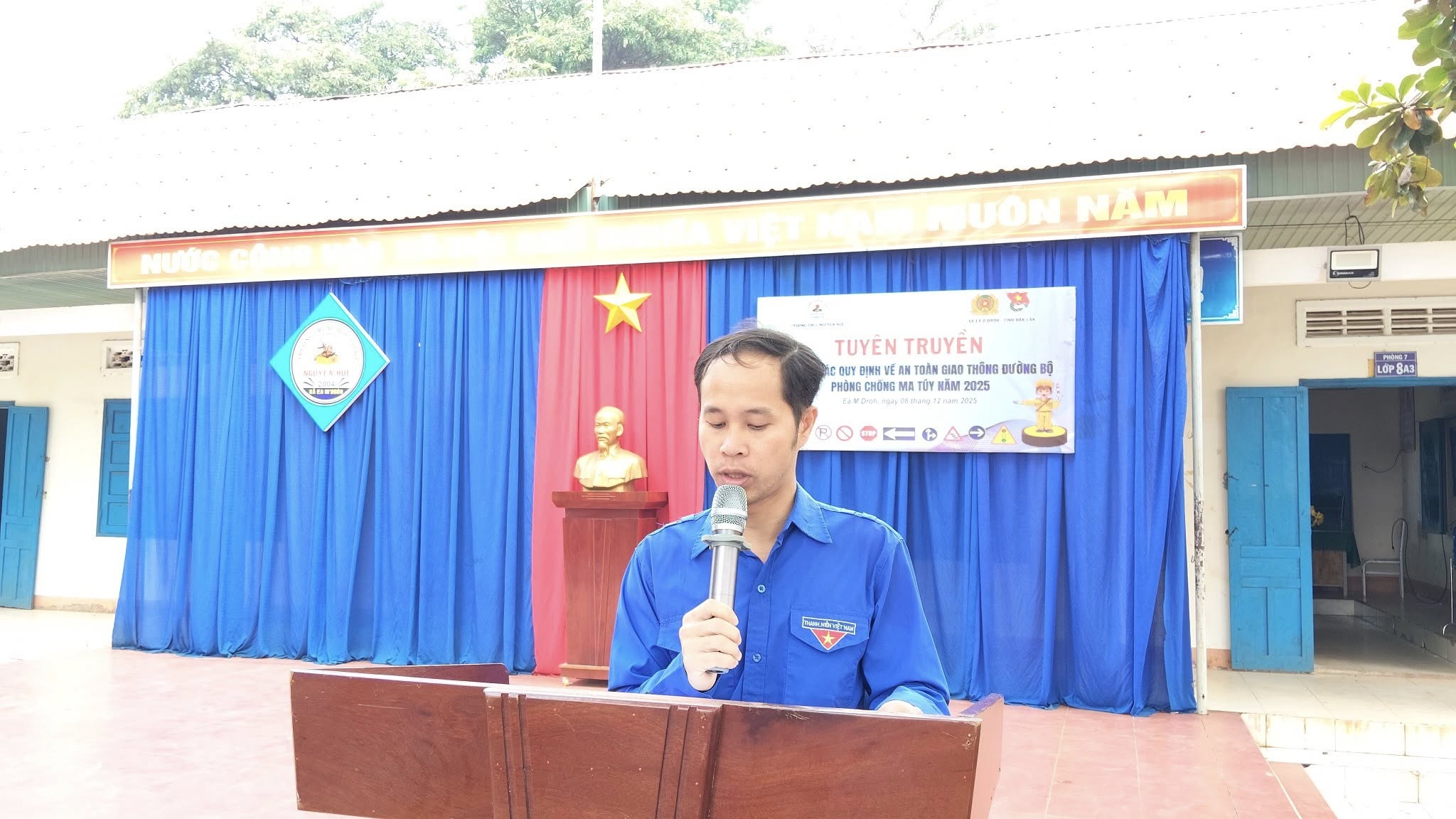 Sáng thứ 2, trong tiết chào cờ đầu tuần ngày 08 tháng 12 năm 2025, tại Trường THCS Nguyễn Huệ, Đoàn TNCS Hồ Chí Minh xã Ea M’Droh đã phối hợp cùng Công an xã Ea M’Droh tổ chức thành công chương trình tuyên truyền chuyên đề về An toàn giao thông đường bộ và Phòng chống ma túy học đường.