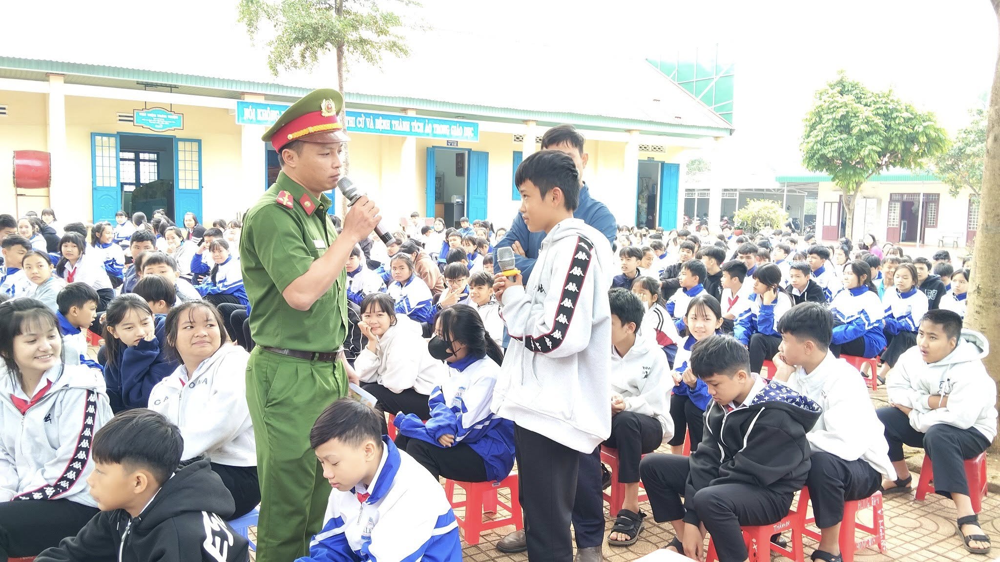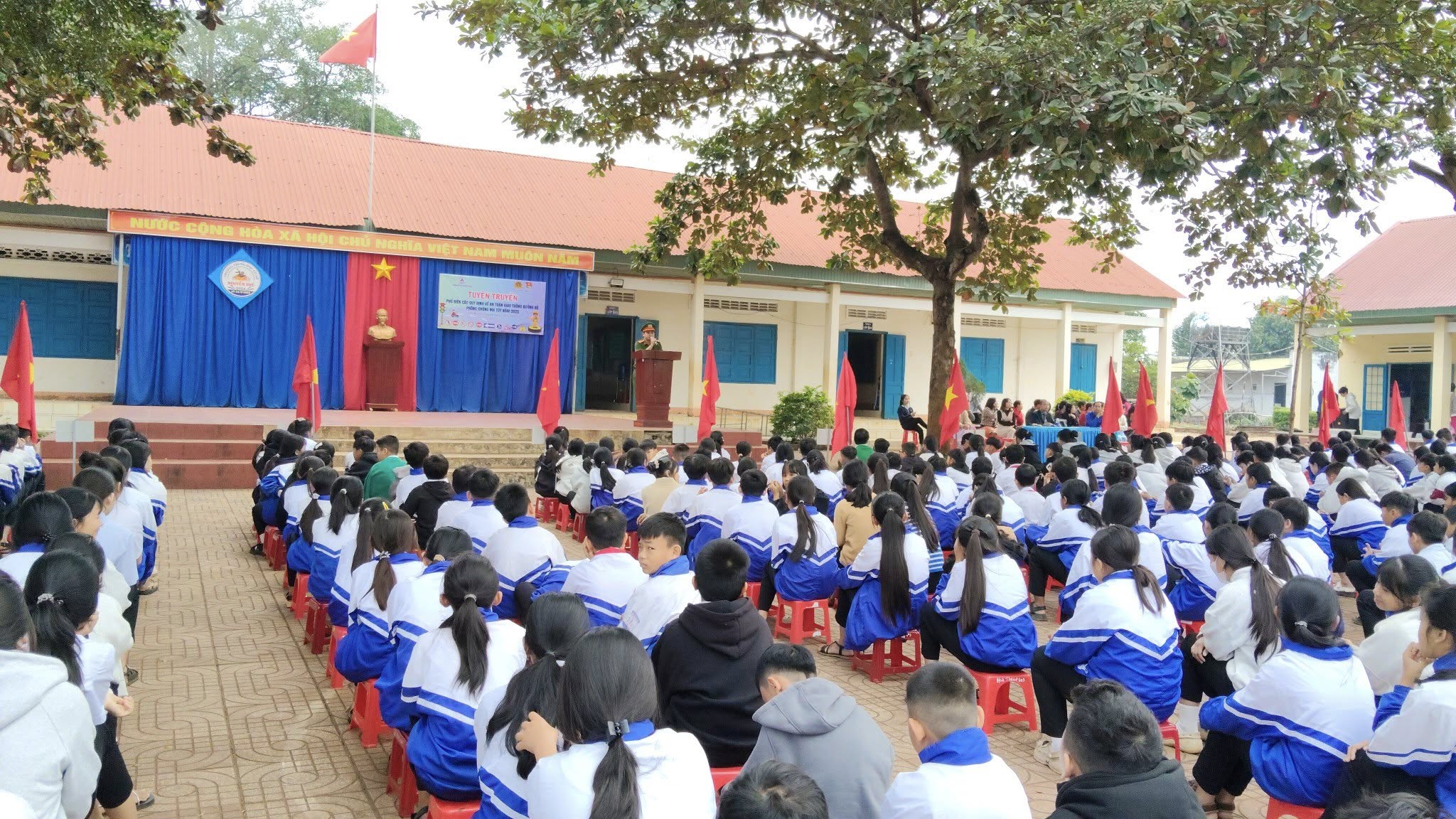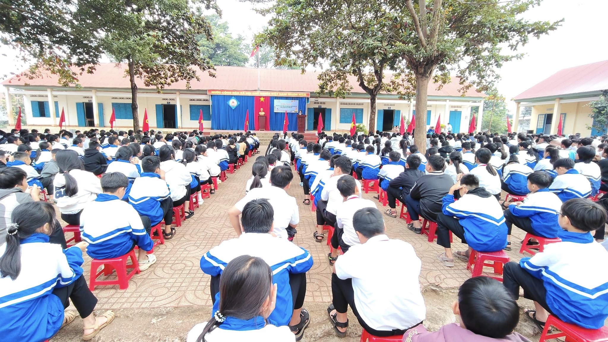 Sáng thứ 2, trong tiết chào cờ đầu tuần ngày 08 tháng 12 năm 2025, tại Trường THCS Nguyễn Huệ, Đoàn TNCS Hồ Chí Minh xã Ea M’Droh đã phối hợp cùng Công an xã Ea M’Droh tổ chức thành công chương trình tuyên truyền chuyên đề về An toàn giao thông đường bộ và Phòng chống ma túy học đường.