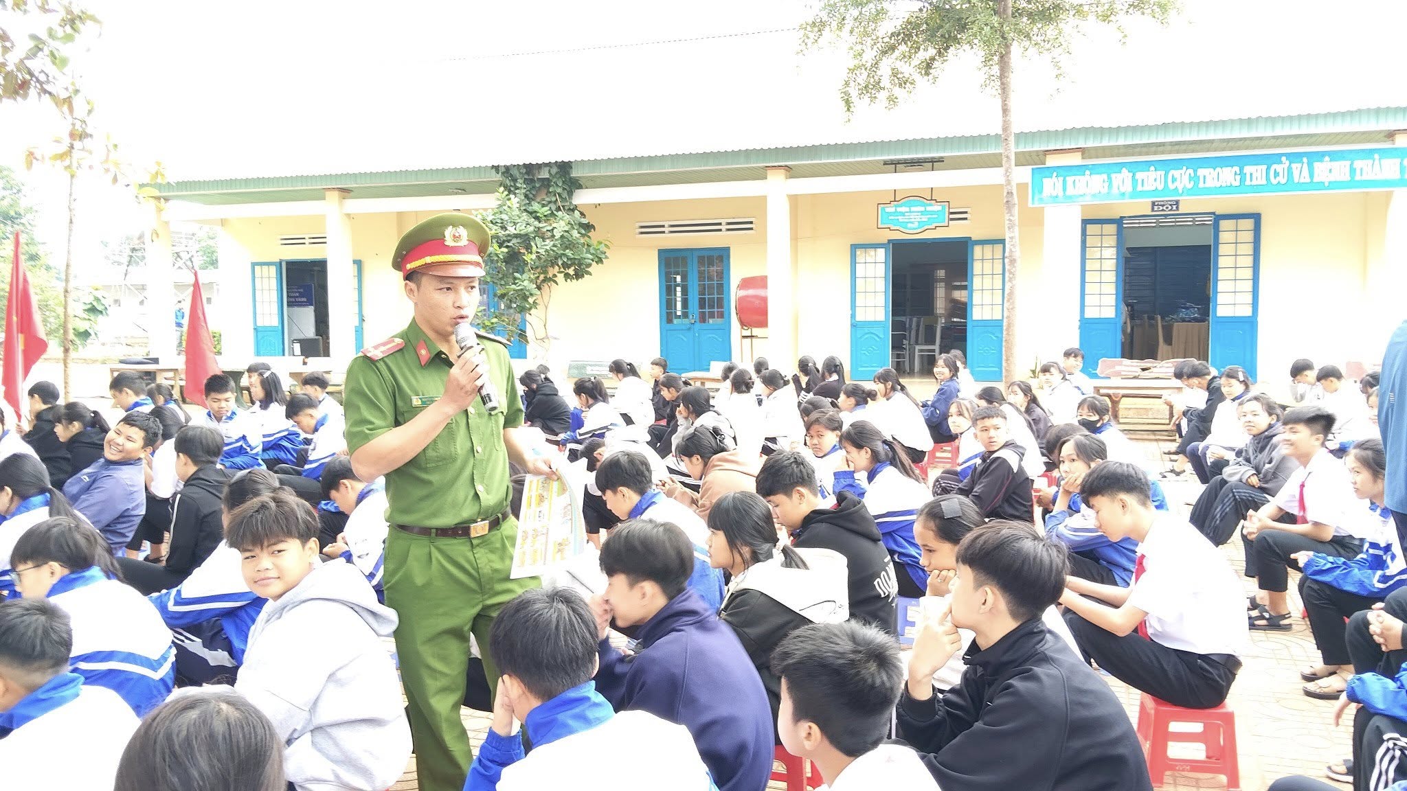 1️⃣ Chuyên đề Phòng chống Ma túy: Đồng chí Trung tá Nguyễn Mạnh Khởi đã trực tiếp tuyên truyền về tác hại khủng khiếp của ma túy, nhận diện các loại ma túy mới đang trà trộn vào học đường (như ma túy tổng hợp, thuốc lá điện tử), và hướng dẫn các em học sinh cách thức nhận biết, phòng tránh để kiên quyết nói KHÔNG với ma túy.